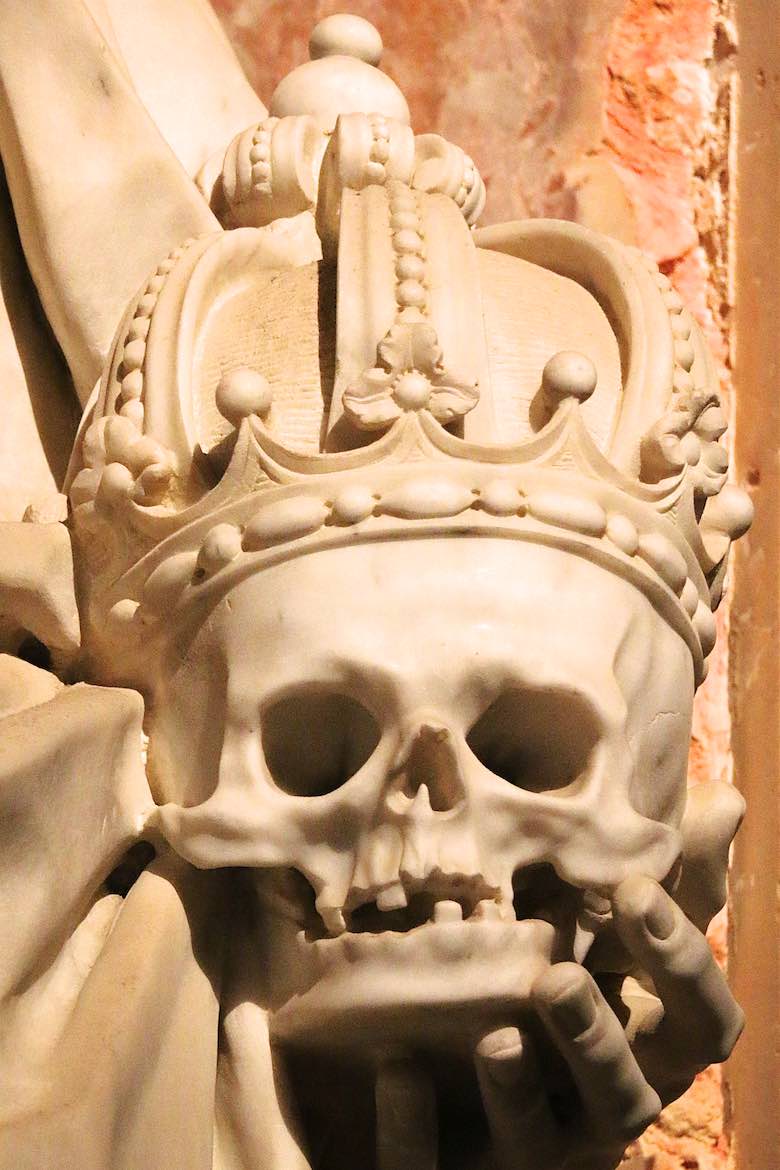 Skull on a statue.